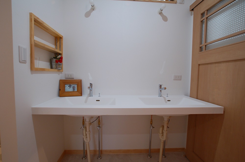床はヒノキ、扉もWOOD ONE のものを使用していたり、
